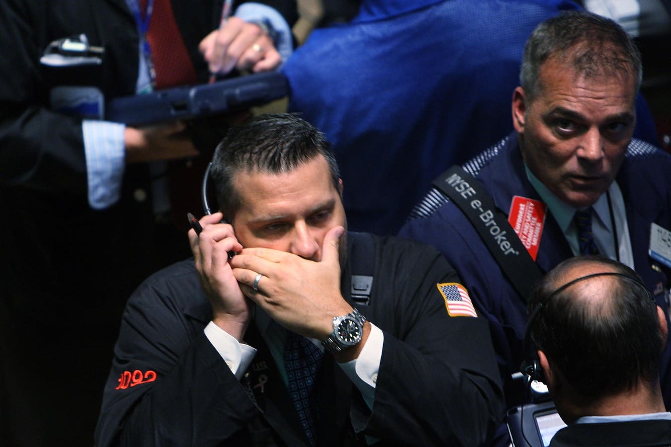 NEW YORK – SEPTEMBER 17: Traders work on the floor of the New York Stock Exchange (NYSE) September 17, 2008 in New York City. Following news late Tuesday of the U.S. government takeover of insurer American International Group (AIG), U.S. stocks opened lower Wednesday as investors digested the news. (Photo by Spencer Platt/Getty Images)