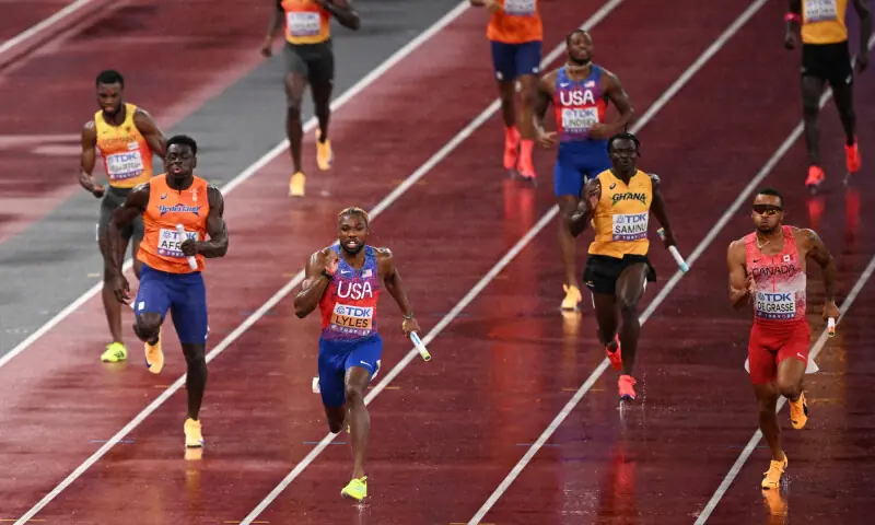 TOKYO: American stars Mel­­i­­s­sa Jefferson-Wooden, Noah Lyles and Sydney McLaughlin-Levrone battled through the rain to add another gold to their tally and bring the curtain down on the world championships in Tokyo.